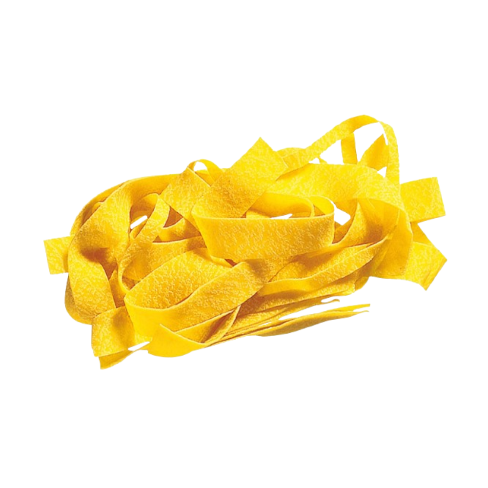 Pasta all’uovo fatta con semola di grano duro delle migliori miscele italiane e non solo, con uova fresche (23,8%) da galline allevate a terra.