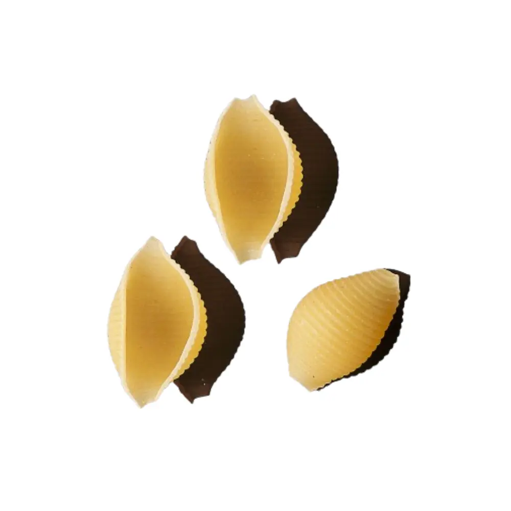Pasta di semola fatta con acqua pura di sorgente e grano duro accuratamente selezionato tra i migliori grani prevalentemente dall’Italia e dal mondo. La trafilatura ruvida e lenta essicazione a basse temperature conferiscono a questa pasta un carattere unico, per un’ottima resa in cottura, perfetta consistenza e masticabilità.