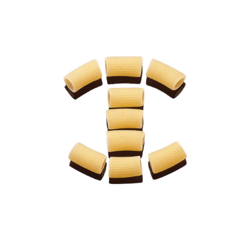 Pasta di semola fatta con acqua pura di sorgente e grano duro accuratamente selezionato tra i migliori grani prevalentemente dall’Italia e dal mondo. La trafilatura ruvida e lenta essicazione a basse temperature conferiscono a questa pasta un carattere unico, per un’ottima resa in cottura, perfetta consistenza e masticabilità.