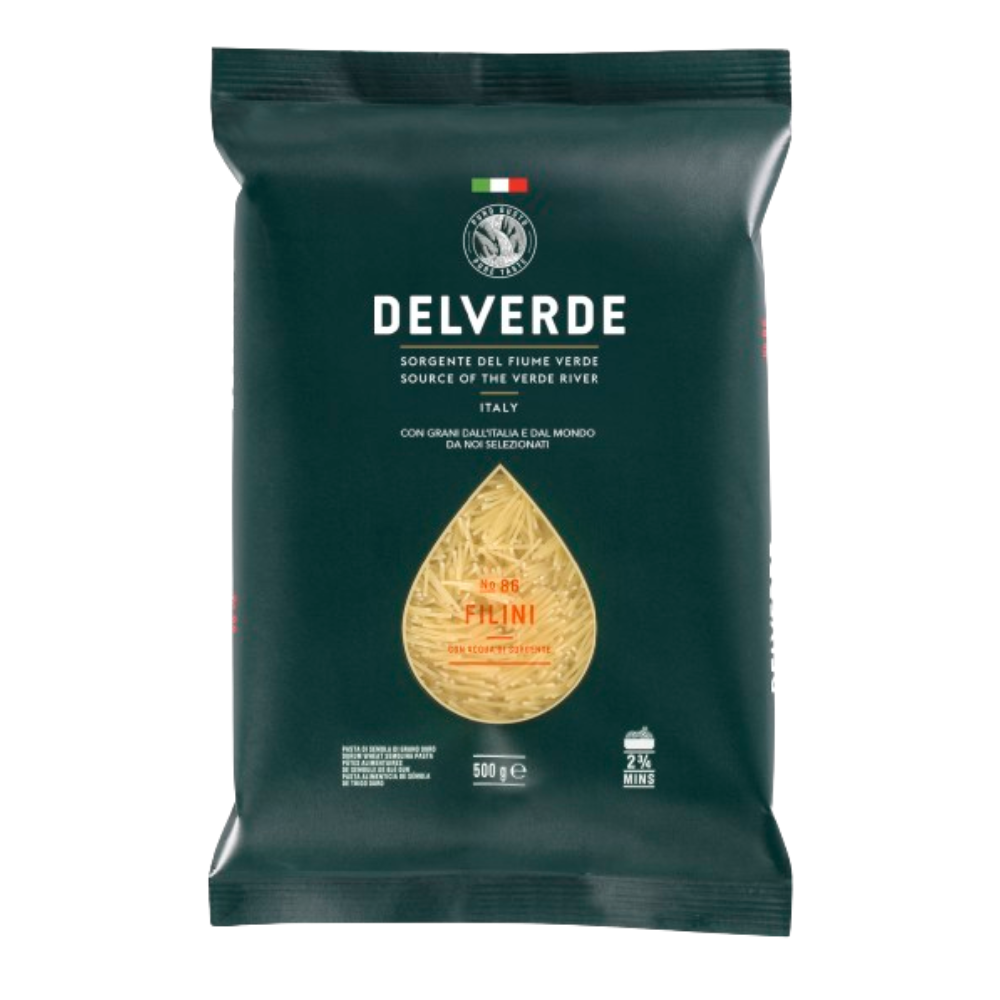 Pasta di semola fatta con acqua pura di sorgente e grano duro accuratamente selezionato tra i migliori grani prevalentemente dall’Italia e dal mondo. La trafilatura ruvida e lenta essicazione a basse temperature conferiscono a questa pasta un carattere unico, per un’ottima resa in cottura, perfetta consistenza e masticabilità.