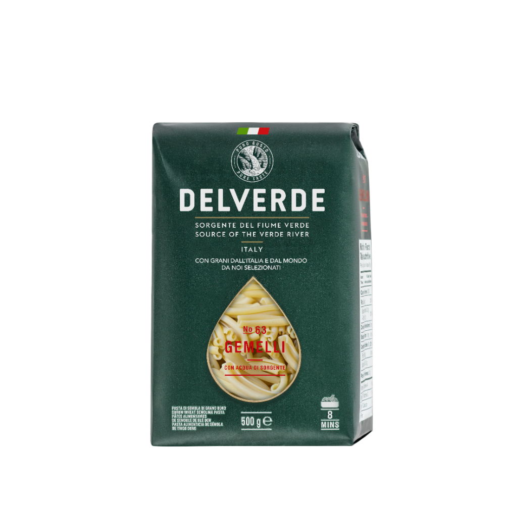 Pasta di semola fatta con acqua pura di sorgente e grano duro accuratamente selezionato tra i migliori grani prevalentemente dall’Italia e dal mondo. La trafilatura ruvida e lenta essicazione a basse temperature conferiscono a questa pasta un carattere unico, per un’ottima resa in cottura, perfetta consistenza e masticabilità.