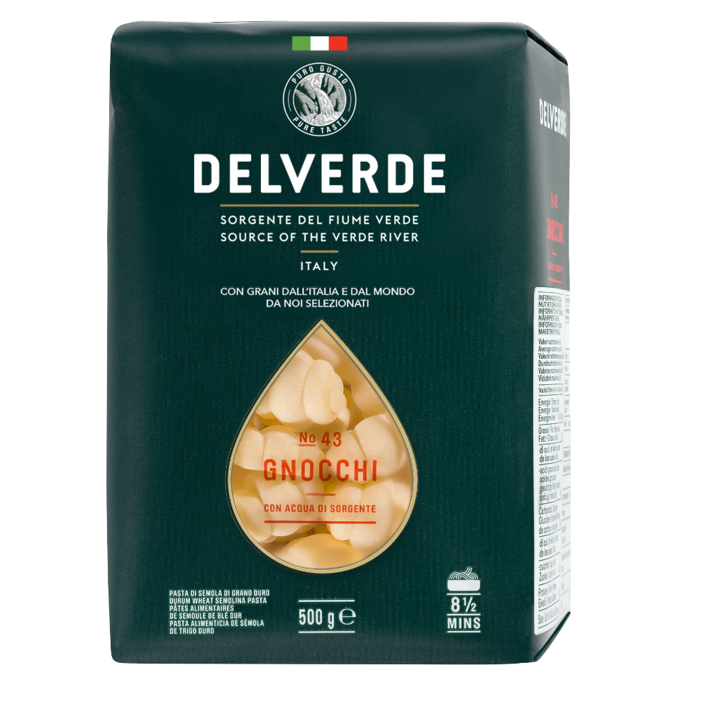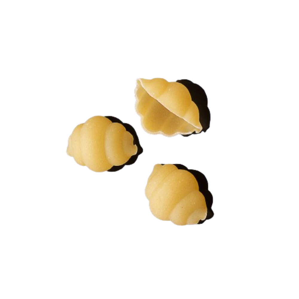 Pasta di semola fatta con acqua pura di sorgente e grano duro accuratamente selezionato tra i migliori grani prevalentemente dall’Italia e dal mondo. La trafilatura ruvida e lenta essicazione a basse temperature conferiscono a questa pasta un carattere unico, per un’ottima resa in cottura, perfetta consistenza e masticabilità.