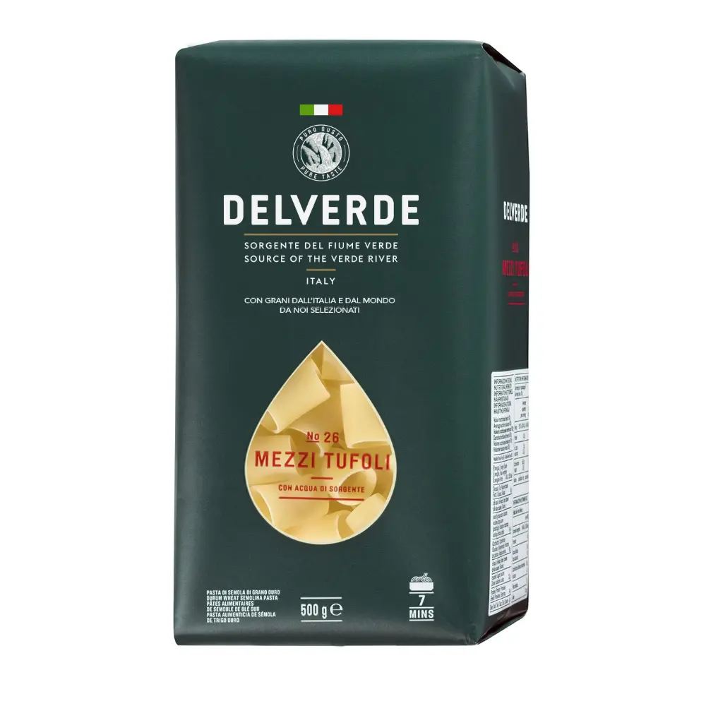 Pasta di semola fatta con acqua pura di sorgente e grano duro accuratamente selezionato tra i migliori grani prevalentemente dall’Italia e dal mondo. La trafilatura ruvida e lenta essicazione a basse temperature conferiscono a questa pasta un carattere unico, per un’ottima resa in cottura, perfetta consistenza e masticabilità.