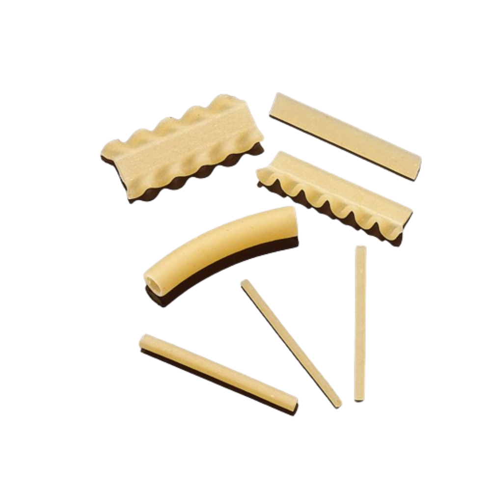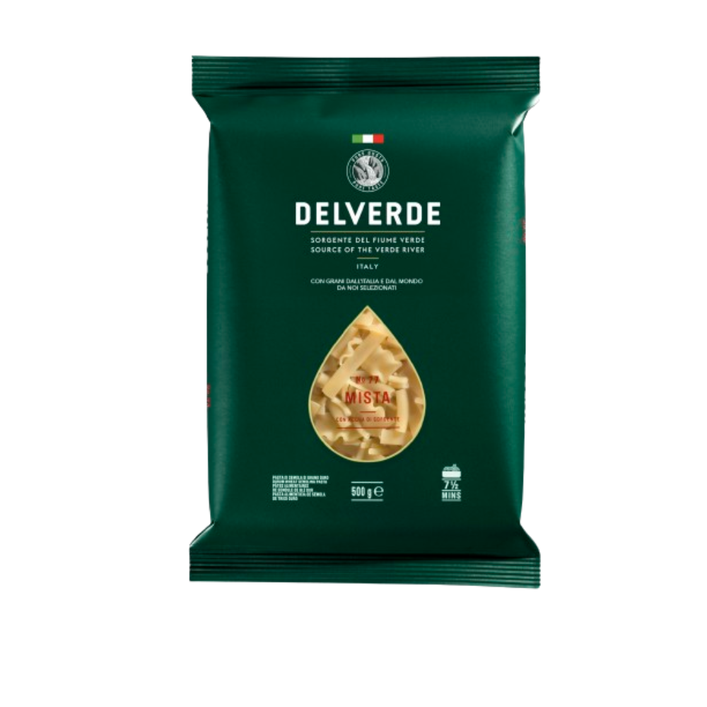 Pasta di semola fatta con acqua pura di sorgente e grano duro accuratamente selezionato tra i migliori grani prevalentemente dall’Italia e dal mondo. La trafilatura ruvida e lenta essicazione a basse temperature conferiscono a questa pasta un carattere unico, per un’ottima resa in cottura, perfetta consistenza e masticabilità.