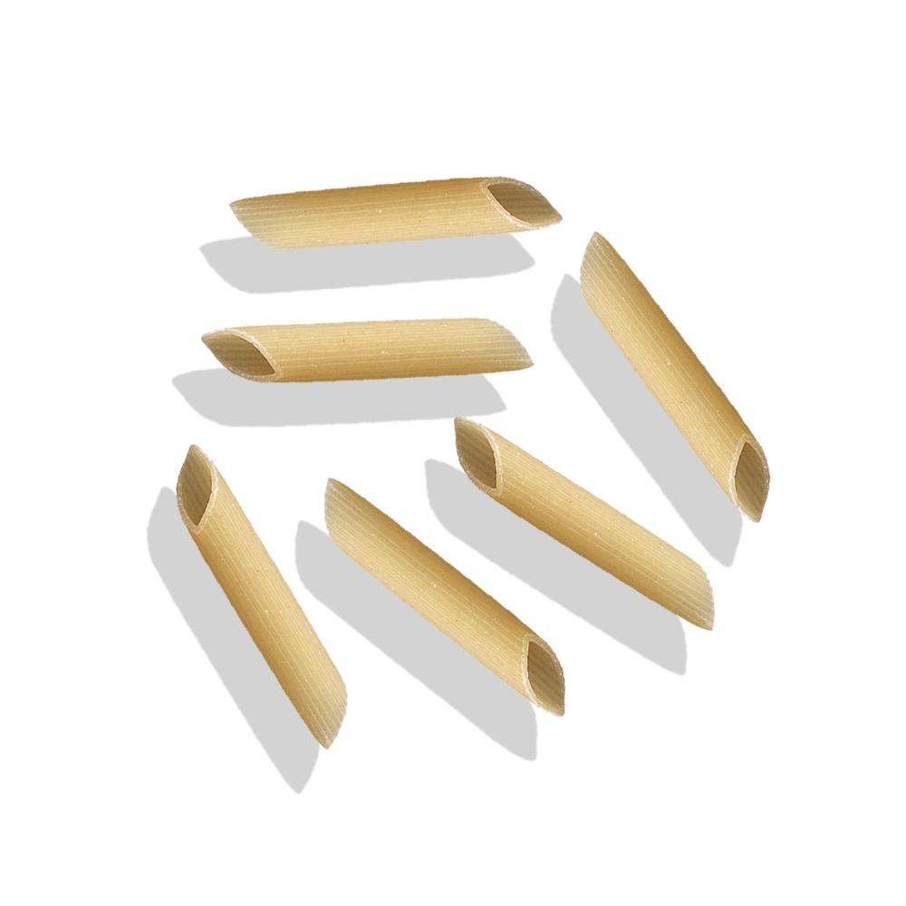 Pasta di semola fatta con acqua pura di sorgente e grano duro accuratamente selezionato tra i migliori grani prevalentemente dall’Italia e dal mondo. La trafilatura ruvida e lenta essicazione a basse temperature conferiscono a questa pasta un carattere unico, per un’ottima resa in cottura, perfetta consistenza e masticabilità.