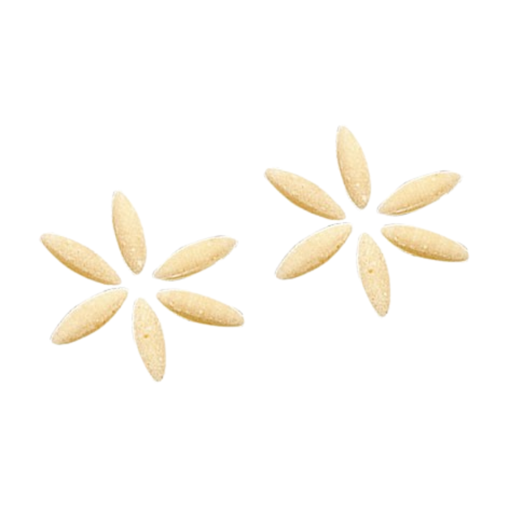 Pasta di semola fatta con acqua pura di sorgente e grano duro accuratamente selezionato tra i migliori grani prevalentemente dall’Italia e dal mondo. La trafilatura ruvida e lenta essicazione a basse temperature conferiscono a questa pasta un carattere unico, per un’ottima resa in cottura, perfetta consistenza e masticabilità.