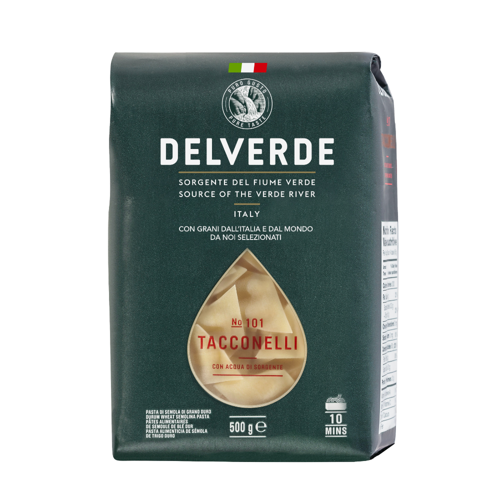 Pasta di semola fatta con acqua pura di sorgente e grano duro accuratamente selezionato tra i migliori grani prevalentemente dall’Italia e dal mondo. La trafilatura ruvida e lenta essicazione a basse temperature conferiscono a questa pasta un carattere unico, per un’ottima resa in cottura, perfetta consistenza e masticabilità.