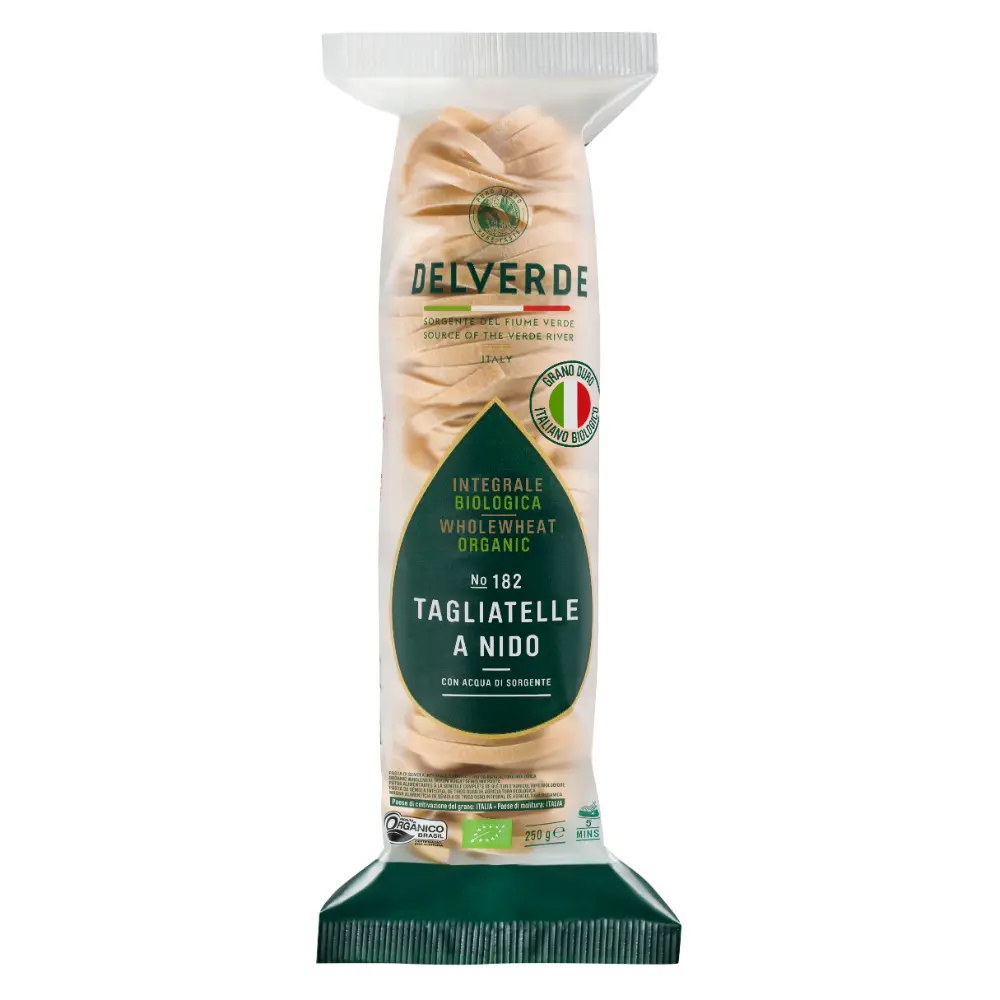Pasta prodotta con acqua pura di sorgente e semola integrale di grano duro proveniente al 100% da agricoltura biologica italiana.